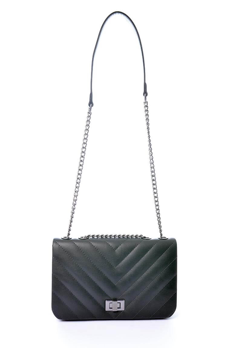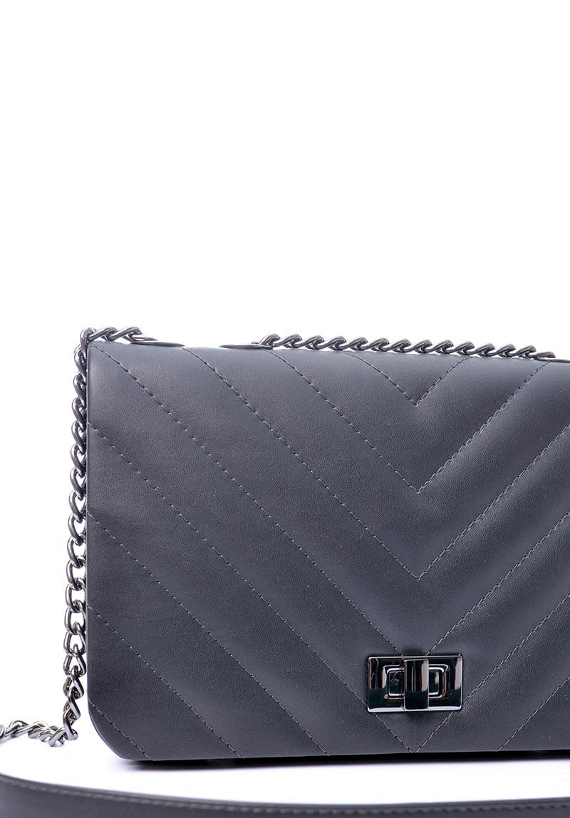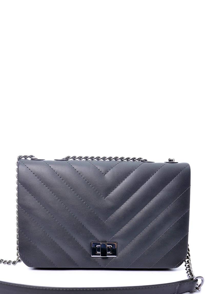 Bolsa Inspiração Marseille, em couro sintético e detalhes em rodio-negro, na cor preta, tamanho médio