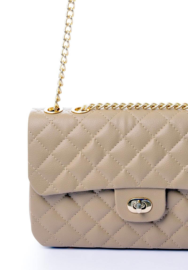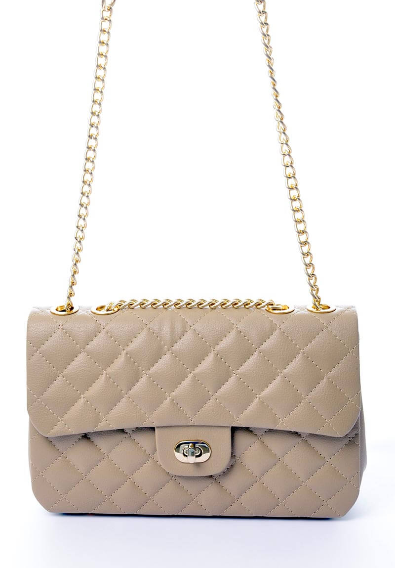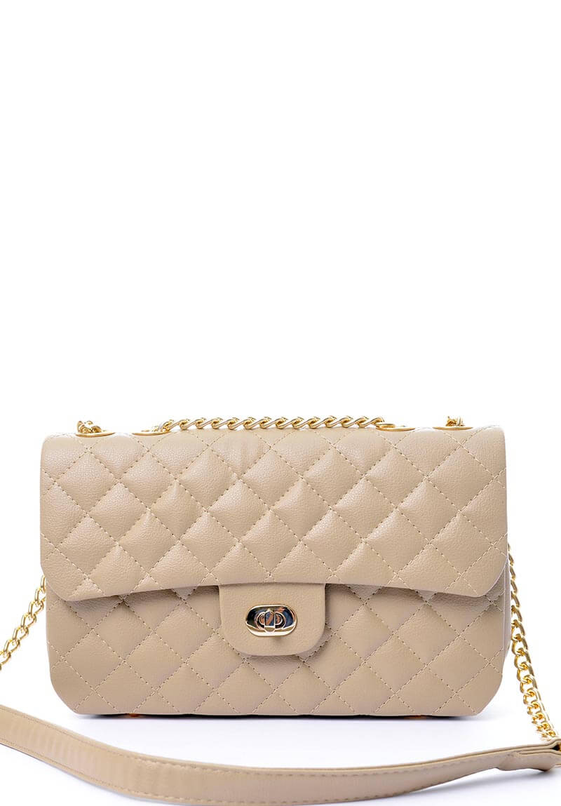 Bolsa Matelasse na cor Caqui ( Café com Leite ) e detalhes em Dourado, tamanho médio