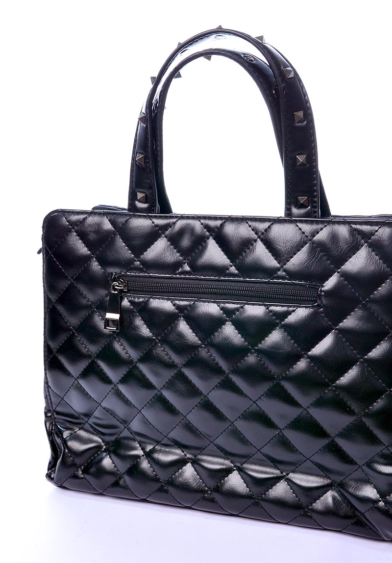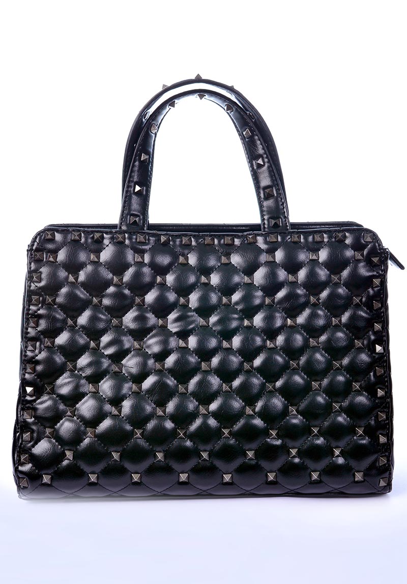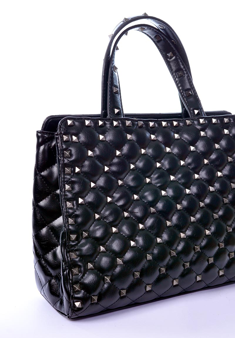 Bolsa Preta com detalhes em Spike na cor grafite, couro sintético, tamanho grande