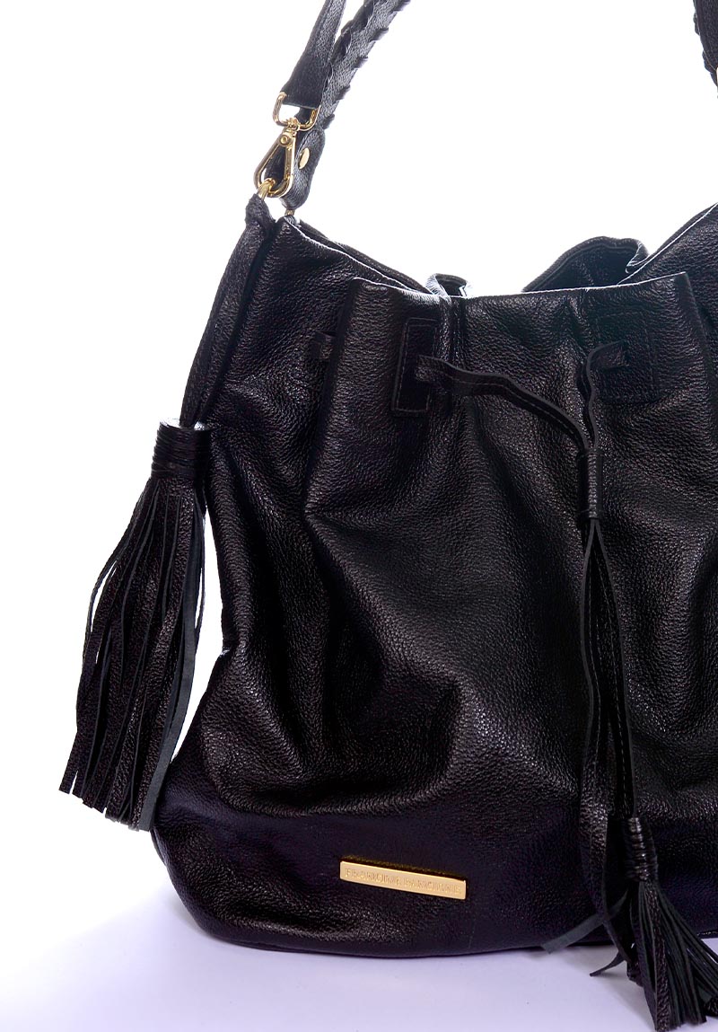 Bolsa de couro, tipo saco, na cor preta. tamanho grande. modelo Firenze, Coleção Itália.