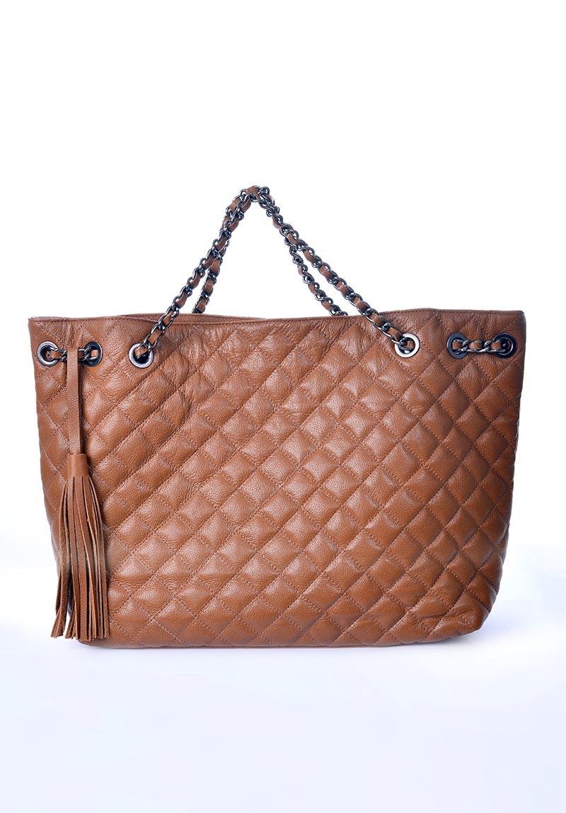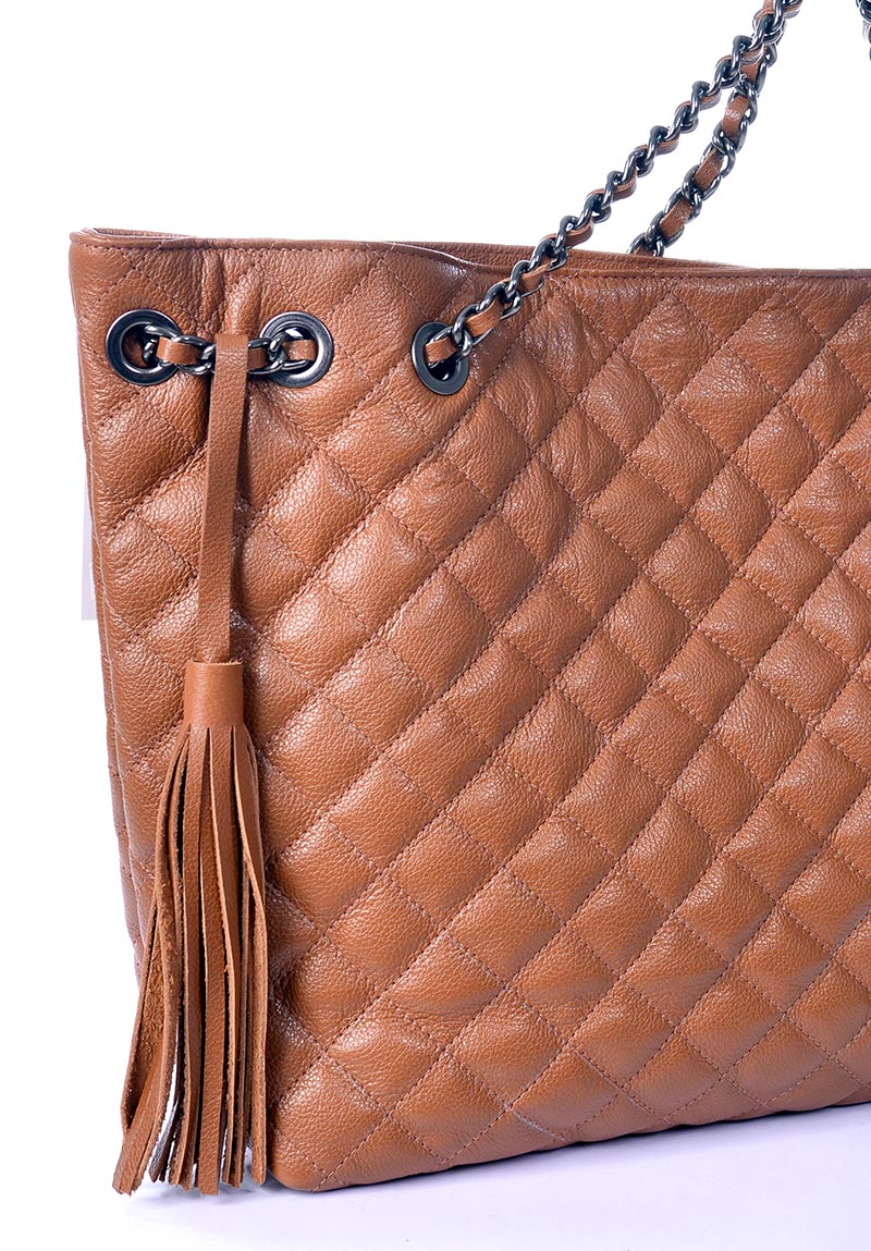 Bolsa Matelasse em couro legitimo na cor caramelo, tamanho grande
