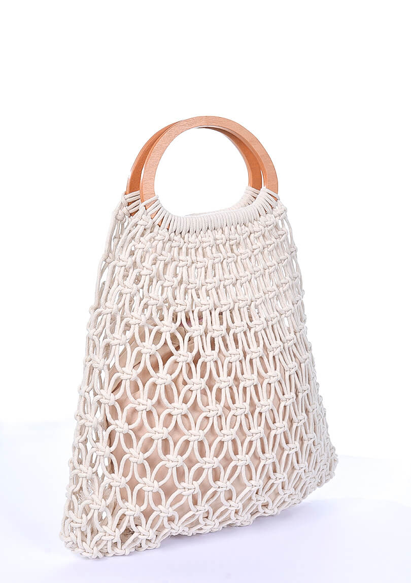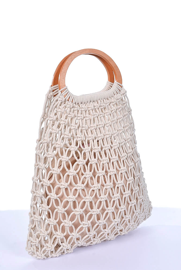 Bolsa com trabalho artesanal em cordas, feita de linho, tamanho grande
