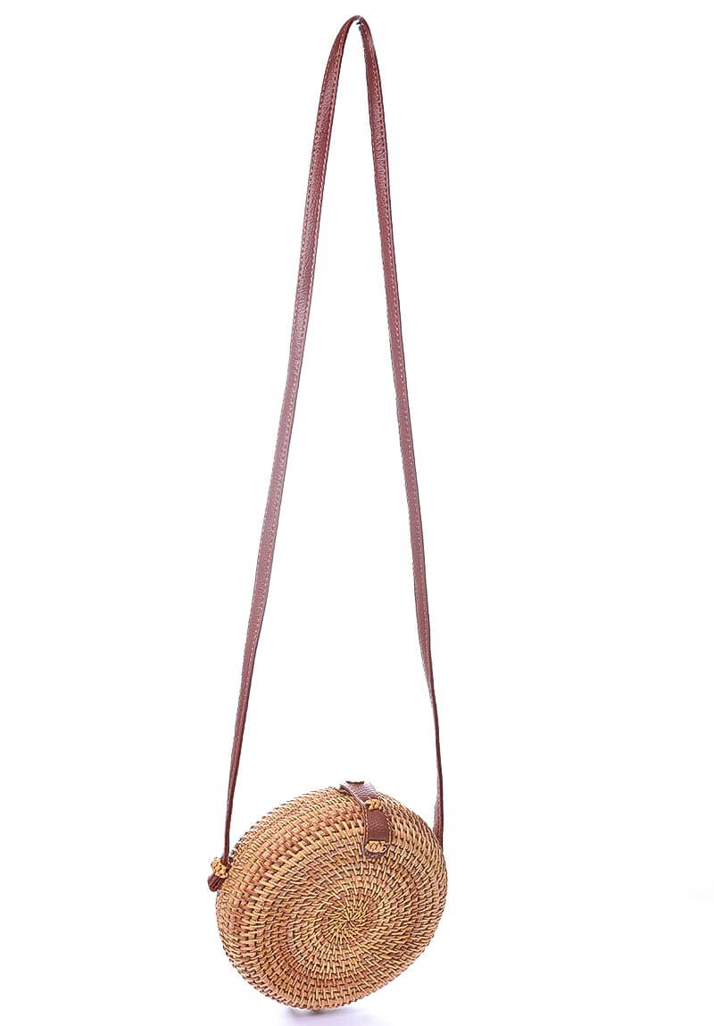 Bolsa de Palha dura com alça de couro marrom, bolsa na cor caramelo, tamanho pequeno