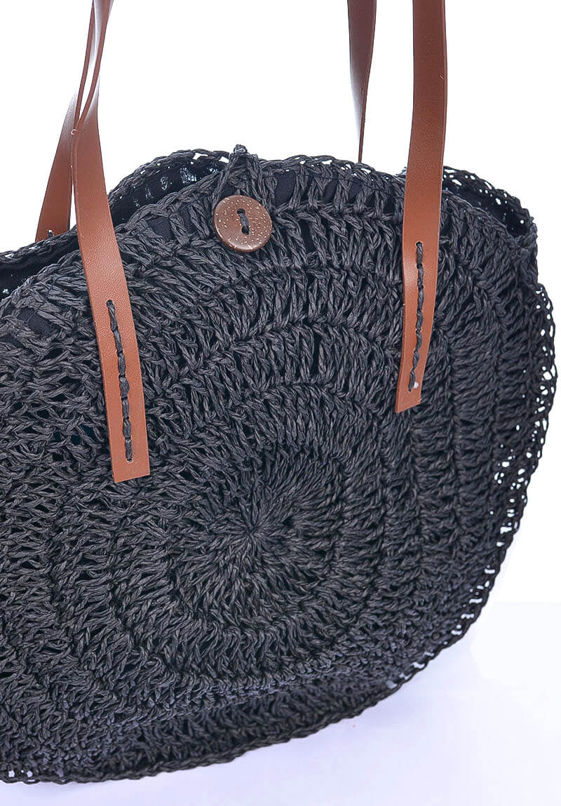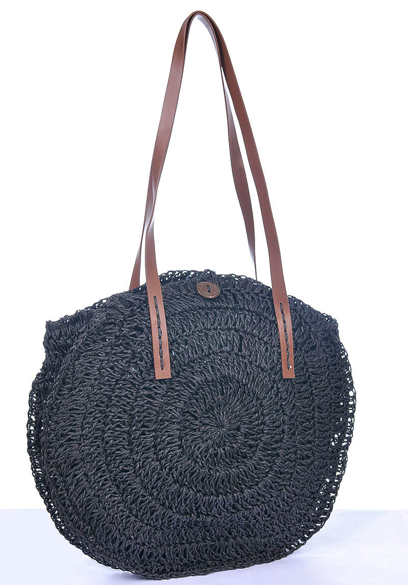 Bolsa de Palha redonda com alça couro na cor Caramelo, tamanho média