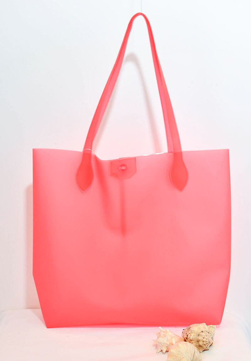 Bolsa de Silicone com botão na cor coral, tamanho grande