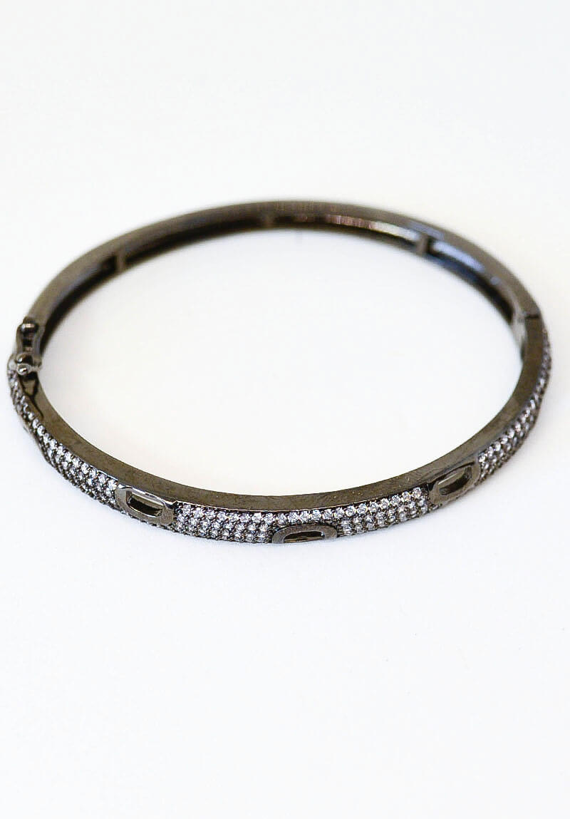 Bracelete de zirconia na cor rodio-negro, tamanho médio
