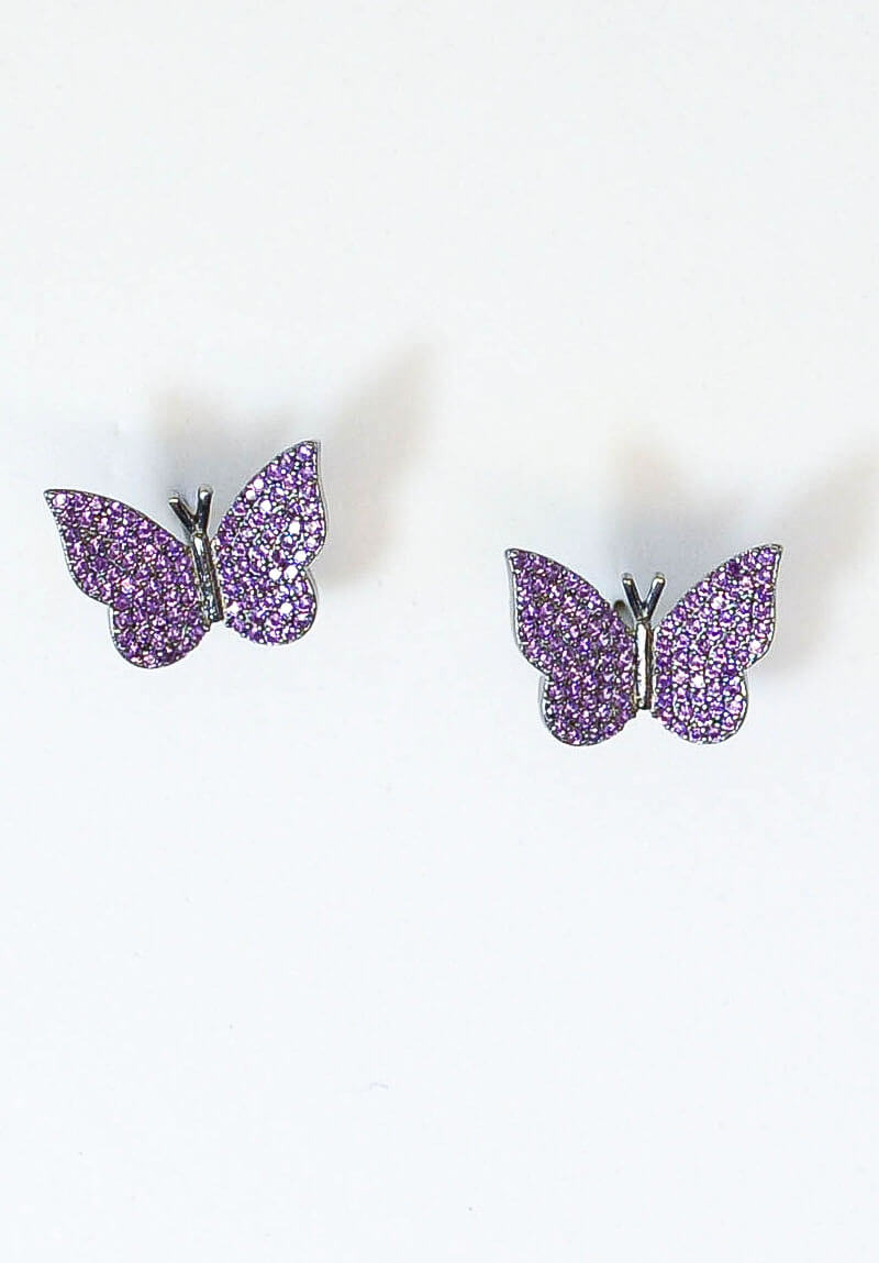 Brinco com zirconia roxa em forma de borboleta na cor roxa, tamanho pequeno