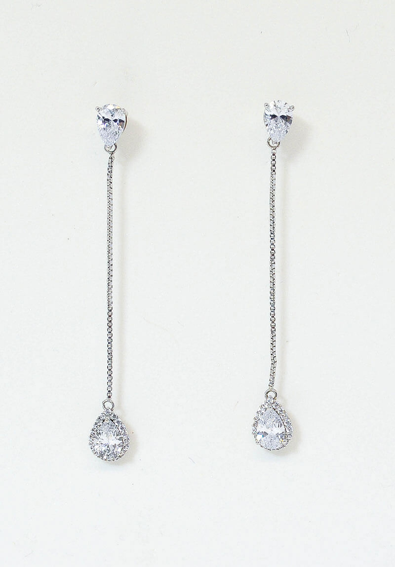 Brinco duas gotas de cristal com gota pendurada na cor rodio-branco, tamanho medio
