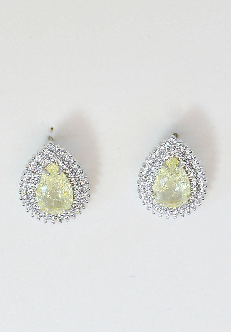 Brinco Zirconia com Yellow-Fancy na cor rodio-Branco, tamanho pequeno