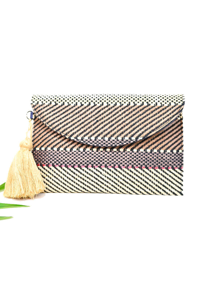 Carteira de Palha Mescla com Tassel, tamanho médio