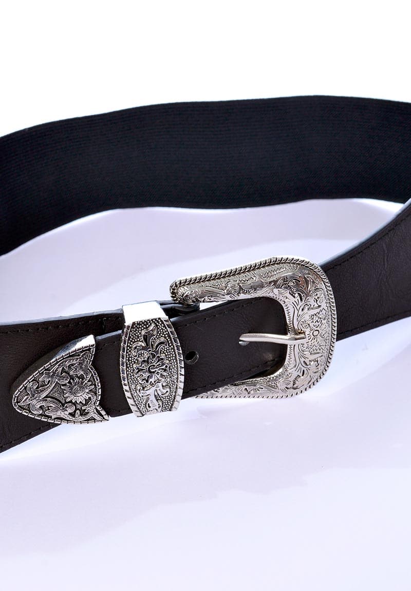 Cinto Largo e elastico na cor preta, com fivela metalica