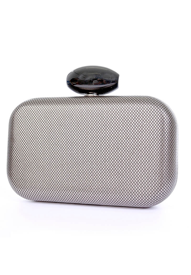 Clutch de couro sintetico na cor cinza escuro, tamanho pequeno