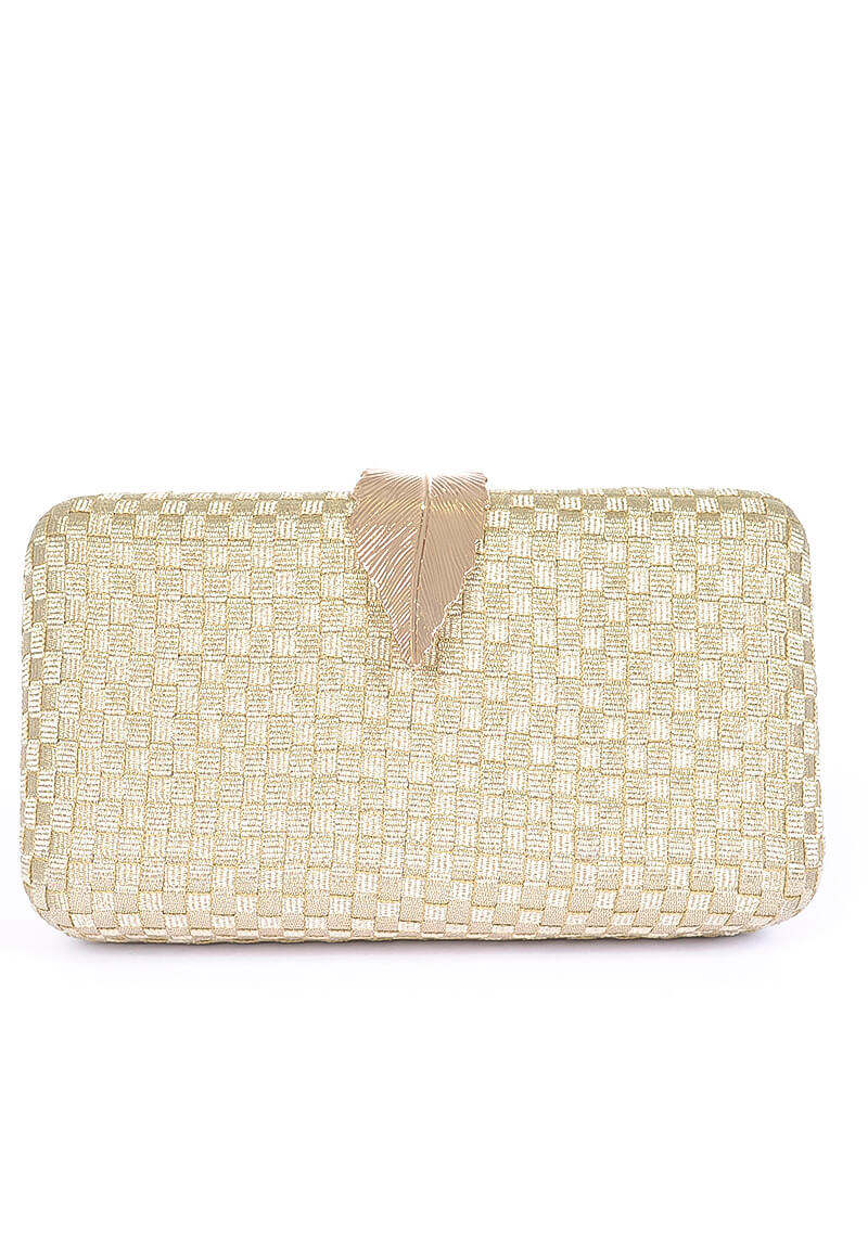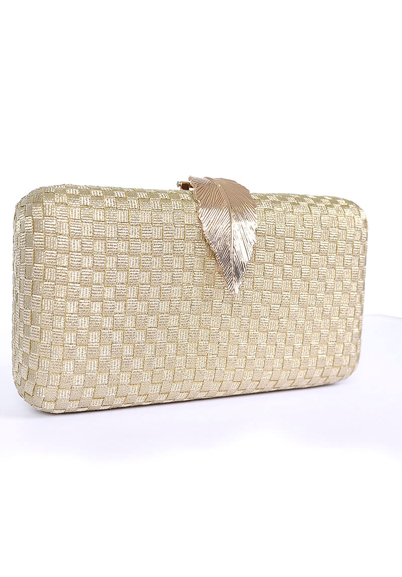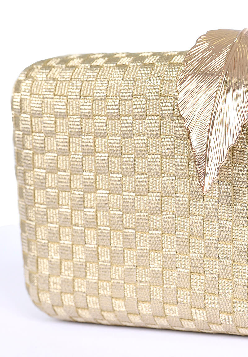 Clutch dourada com feixo de folha dourado, tamanho pequeno