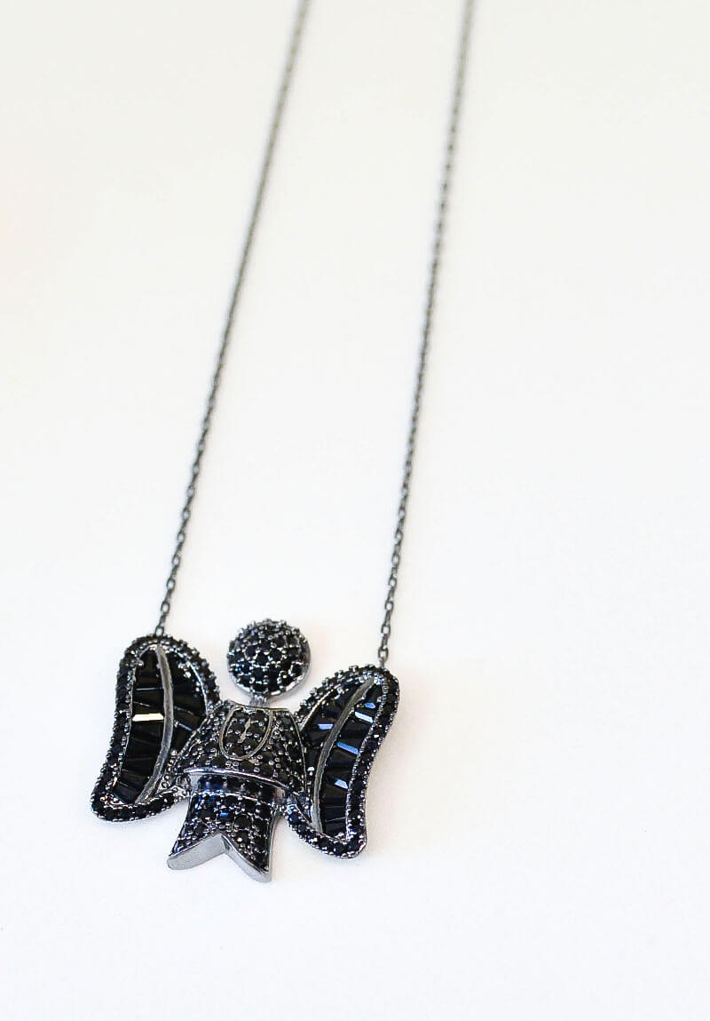 Colar de Anjo com zirconia na cor rodio-negro, tamanho médio