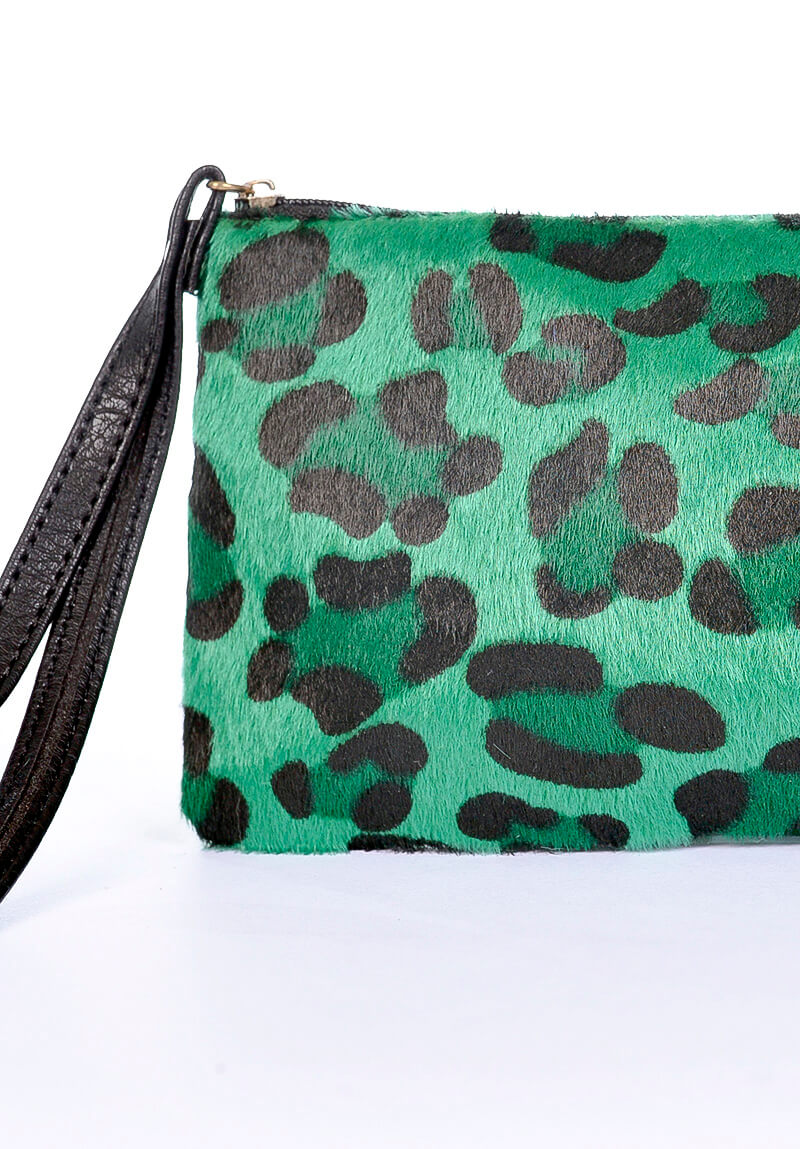 Necessarie com pele artificial Animal Print – Onça verde, tamanho pequeno
